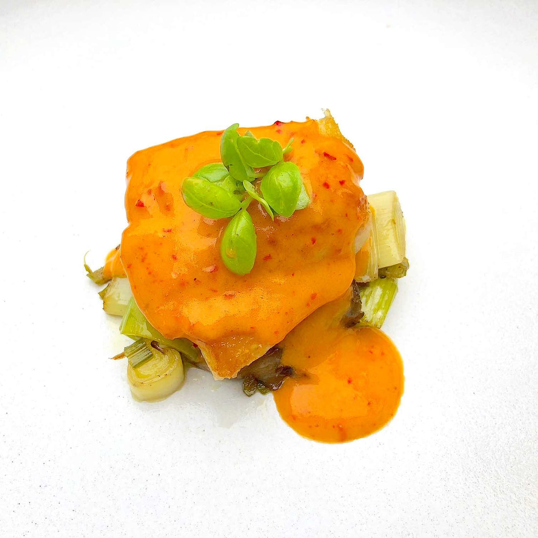 This is basically a butter sauce or beurre blanc with a spicy kimchi. Smother the sauce over the buttery black cod fish, serve it with leeks and mushrooms and your set up for a fantastic meal. Here is the recipe I hope you enjoy it!