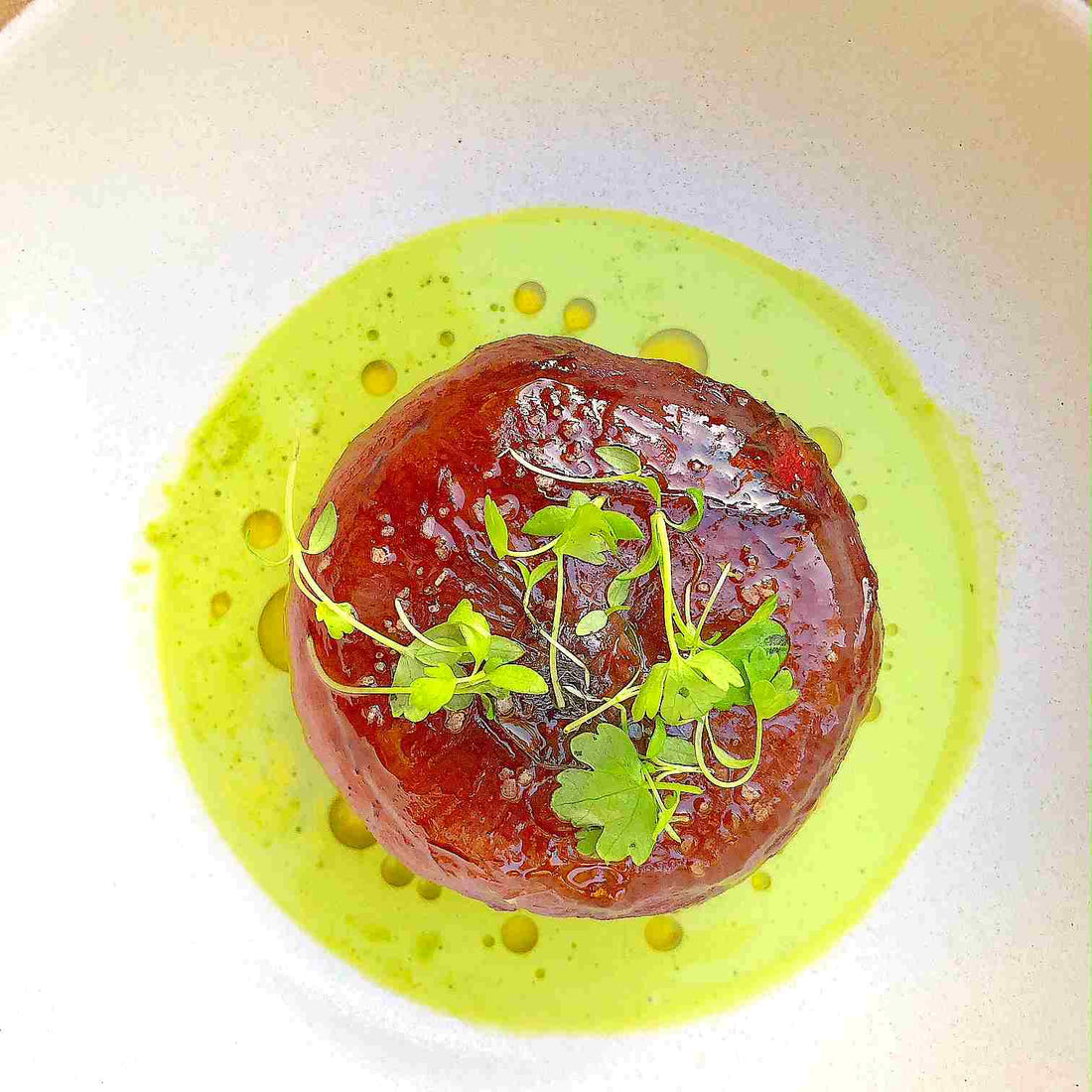 Take the onions out of the onion and place one in each plate with sauce. Then drizzle with a little more olive oil. Top with micro celery, serve and enjoy!