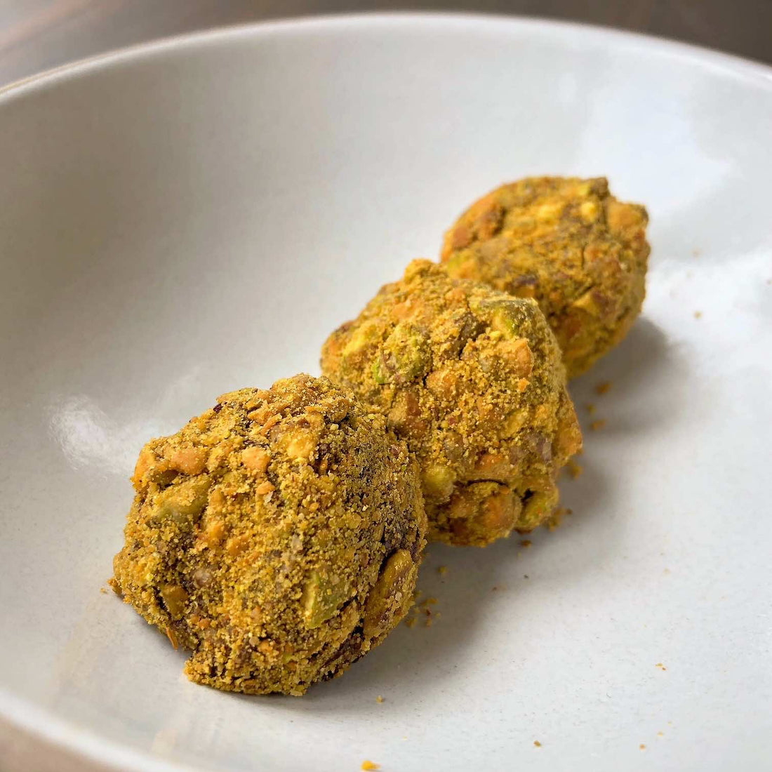 If not just roll the balls in the candied pistachios bowl to create a nice truffle. Continue until all are coated well.
