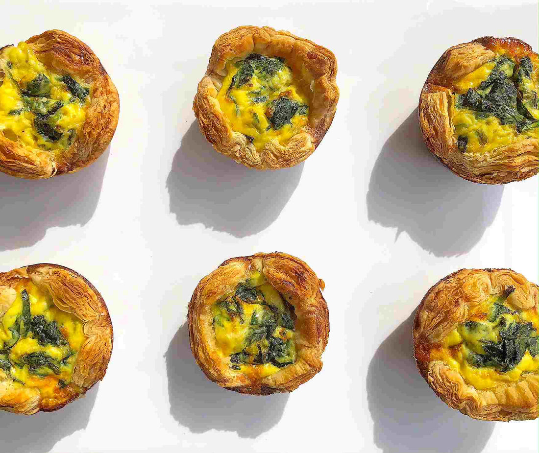 This was the perfect mold for individual serving sizes and also keeps the egg base from spilling over.I also decided to use puff pastry instead of a pate brisee (pie crust).