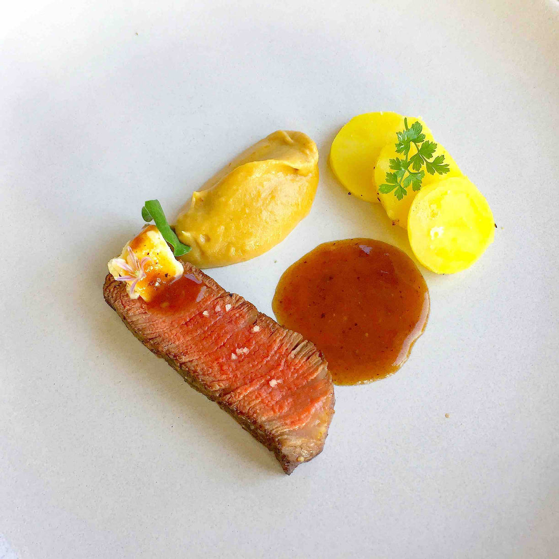 You have to try this easy sous vide beef fillet recipe with caramelized onions puree and potato with bordelaise sauce!